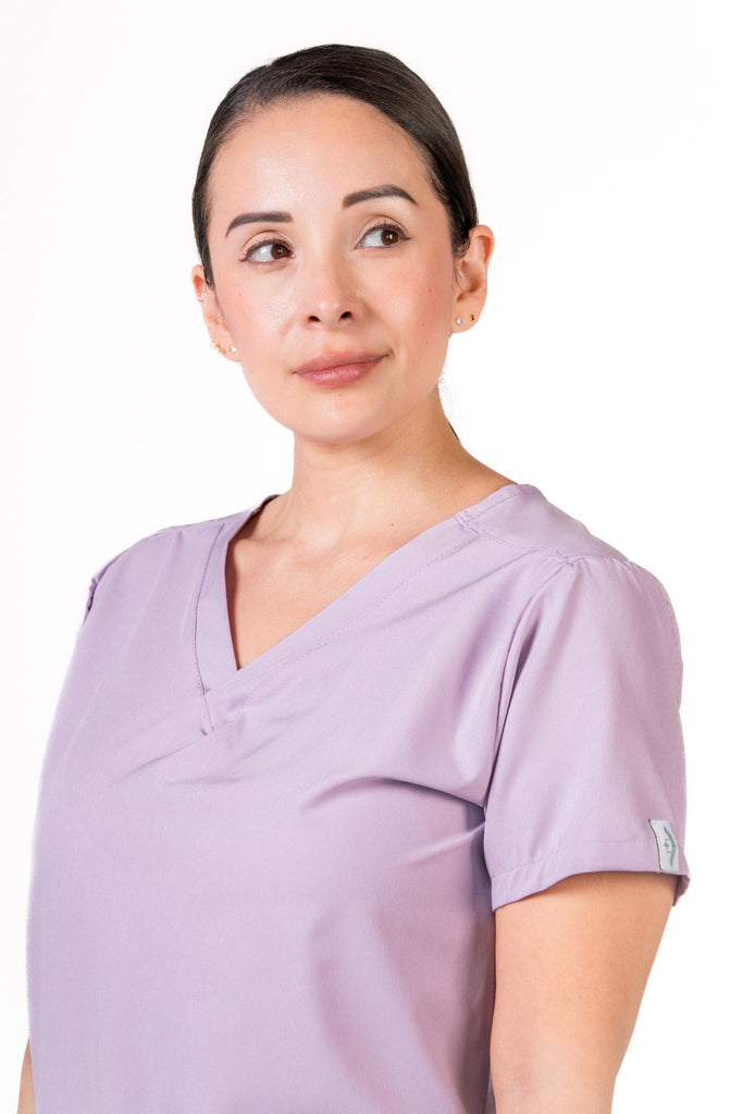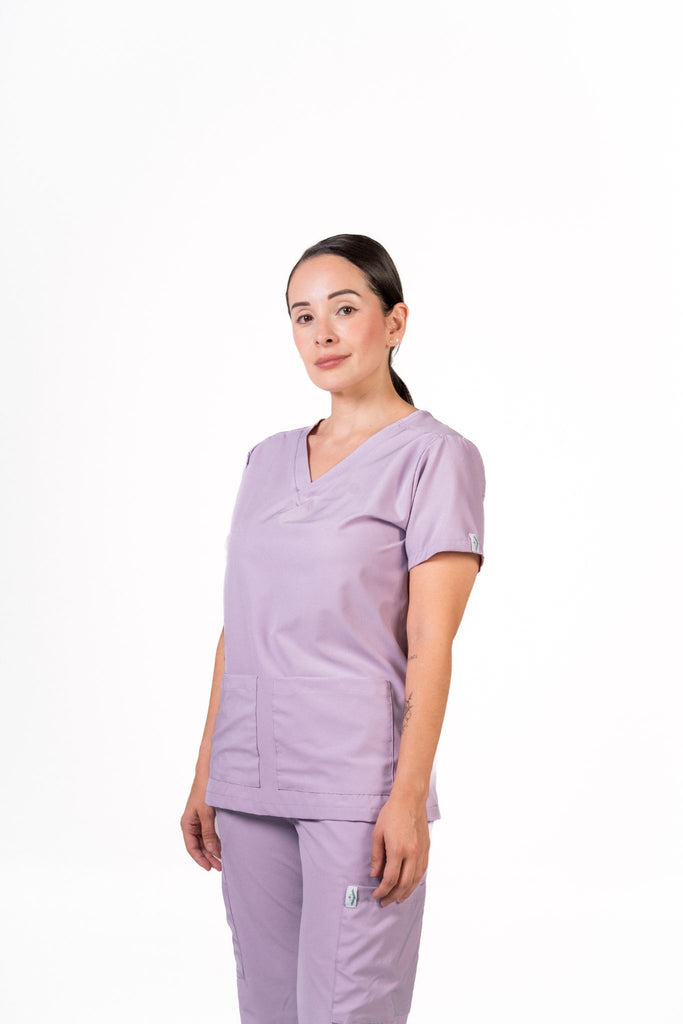 Detalles: Cuello V, filipina con bolsas laterales inferiores.